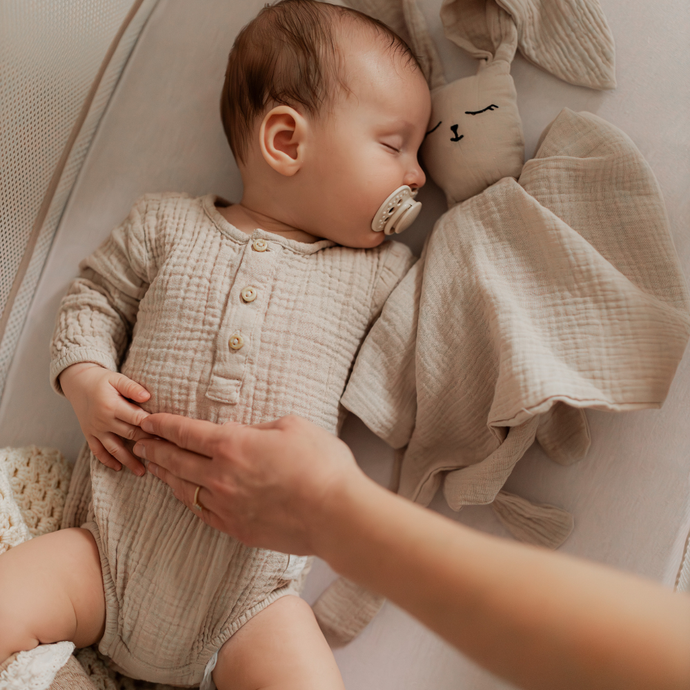 O jucărie din muselină creată special pentru primele luni de viață ale bebelușului tău. Dacă este îmbrățișată mai întâi de mamă, preia mirosul ei și îi oferă micuțului un sentiment de siguranță și apropiere – chiar și atunci când doarme separat!